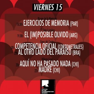 En Village Cines se presentan los films chilenos Aquí no ha pasado nada, dirigida por Alejandro Fernández Almendras y Madre, de Aaron Burns, en el cierre de la sección Penumbras.